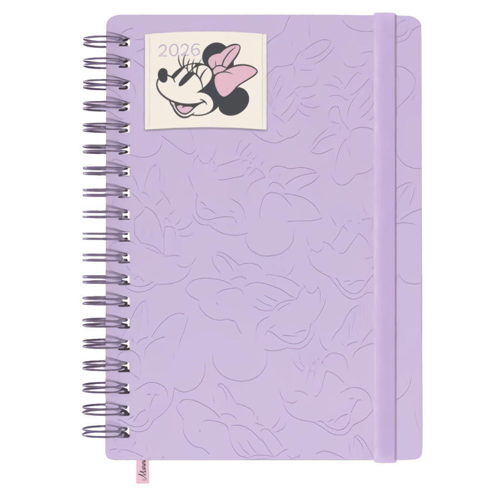 Agenda de tamaño práctico ideal para la organización diaria. Cuenta con 384 páginas que permiten registrar citas, notas y recordatorios, además de un atractivo diseño de Minnie que la hace perfecta para uso personal o escolar.