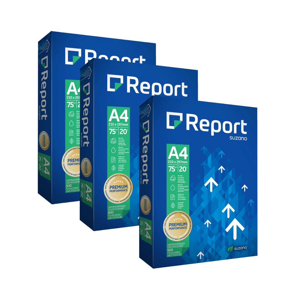 Combo de resmas de papel Report A4 en pack de 3, ideal para uso en oficina, estudio o impresión en el hogar. Ofrece papel fotocopia premium con alta blancura, excelente calidad y rendimiento óptimo para impresoras láser y de inyección. Perfecto para obtener impresiones nítidas, documentos profesionales y un uso eficiente en tareas diarias.