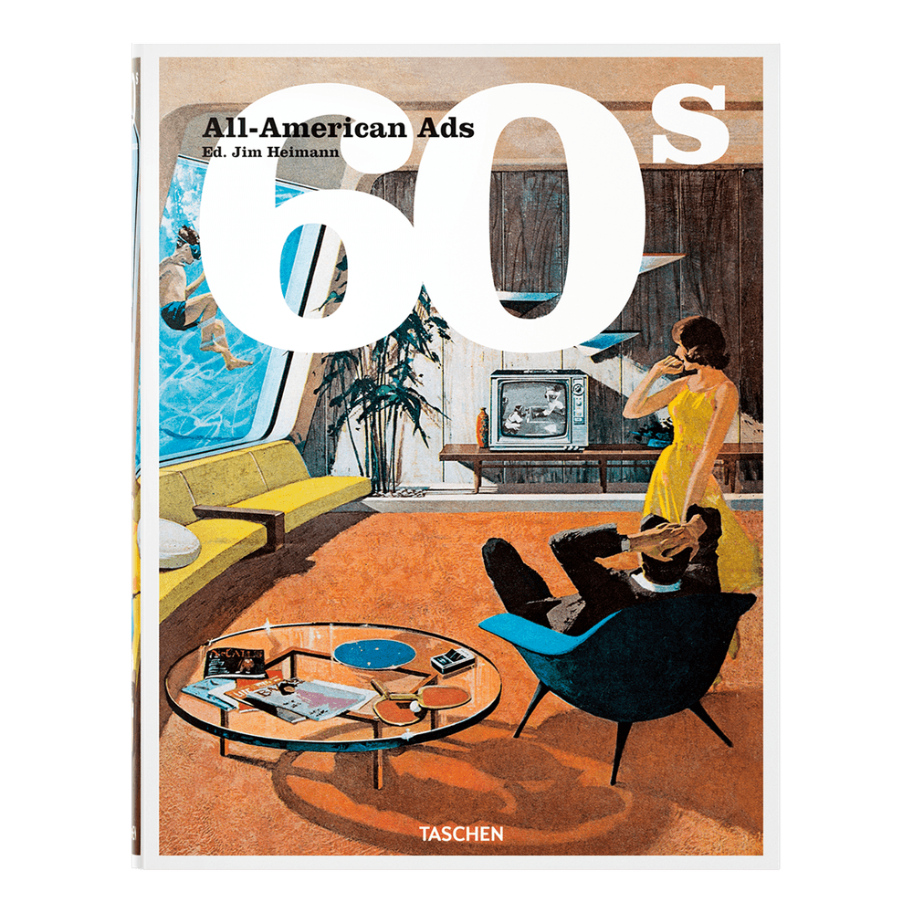 Los Estados Unidos de los sesenta irradiaban optimismo y presagiaban un futuro espléndido, y la publicidad animaba a entregarse al consumismo. Esta colección de anuncios muestra a estrellas como Sean Connery, Woody Allen, Salvador Dalí y Sammy Davis Jr. anunciando todo tipo de productos, de bourbon a trajes, en una época de marcados contrastes.