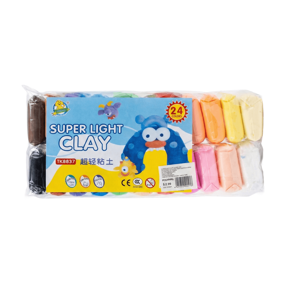 Set de Arcilla con 24 colores intensos, fácil de moldear y de secado al aire (sin horno). Segura y no tóxica, ideal para niños y niñas. Perfecta para estimular la creatividad y desarrollar habilidades manuales.