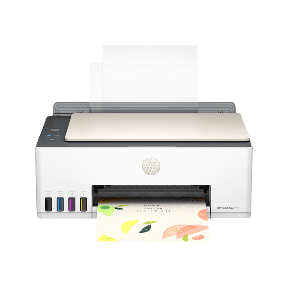 La HP Smart Tank 583 es una impresora multifuncional de inyección de tinta diseñada para ofrecer alto rendimiento y bajo costo por página.