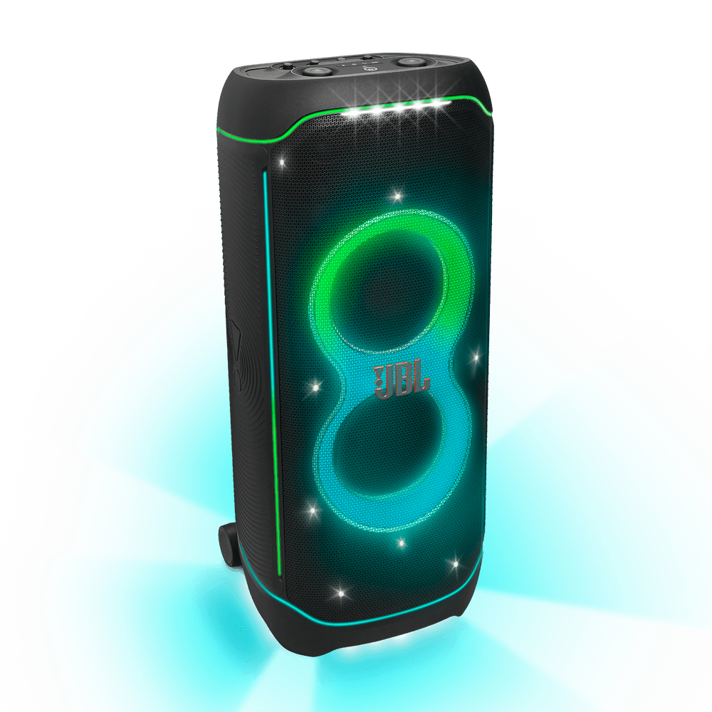 El JBL PartyBox Ultimate ofrece un sonido JBL Original Pro de calidad superior, mejorado con una experiencia envolvente Dolby Atmos a través de Wi-Fi y un impresionante espectáculo de luces que se mueve al ritmo de tu música.