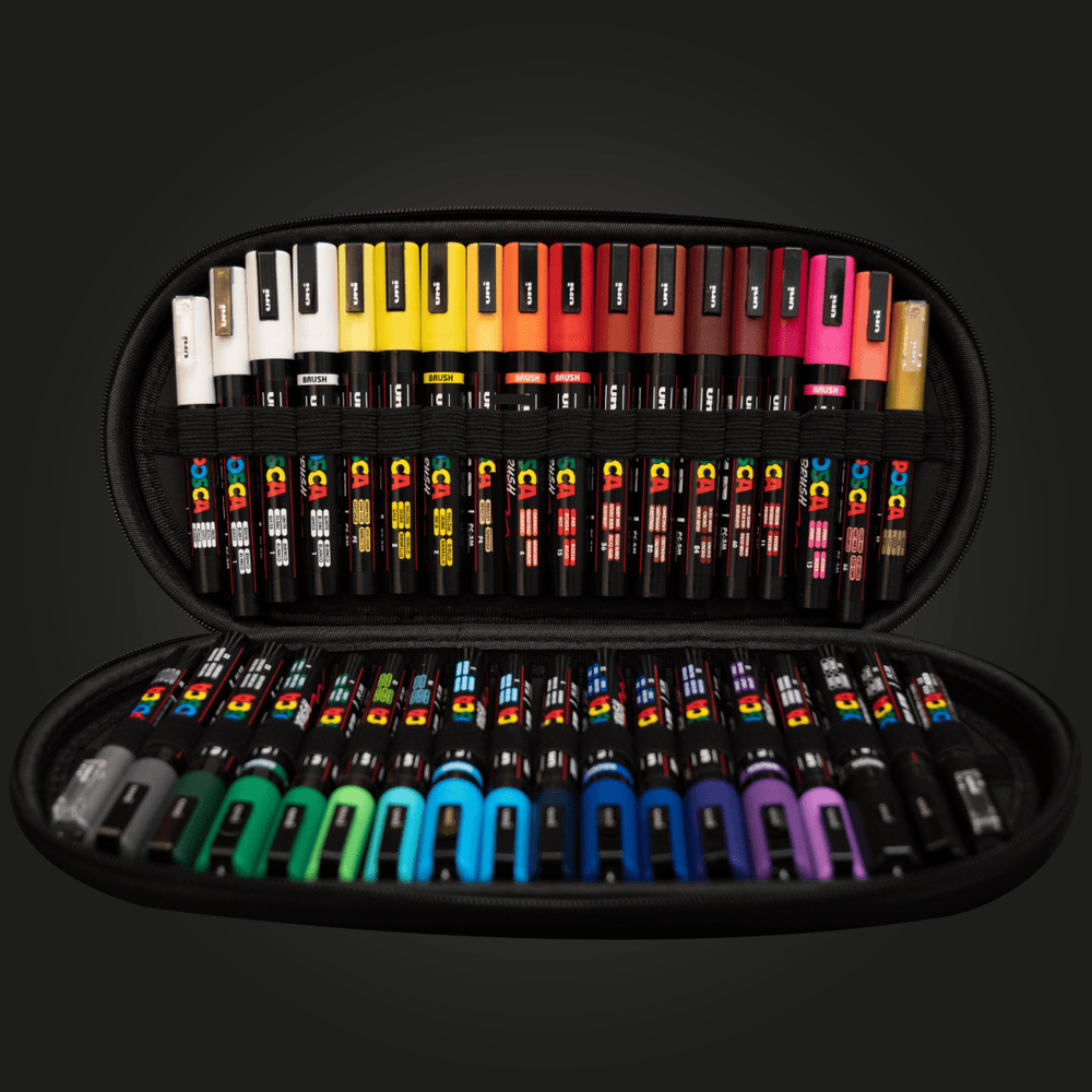 El nuevo maletín Posca incluye 36 marcadores en una práctica presentación para transportarlos y mantenerlos organizados. Contiene 4 tipos de puntas para adaptarse a diferentes estilos y técnicas de dibujo: