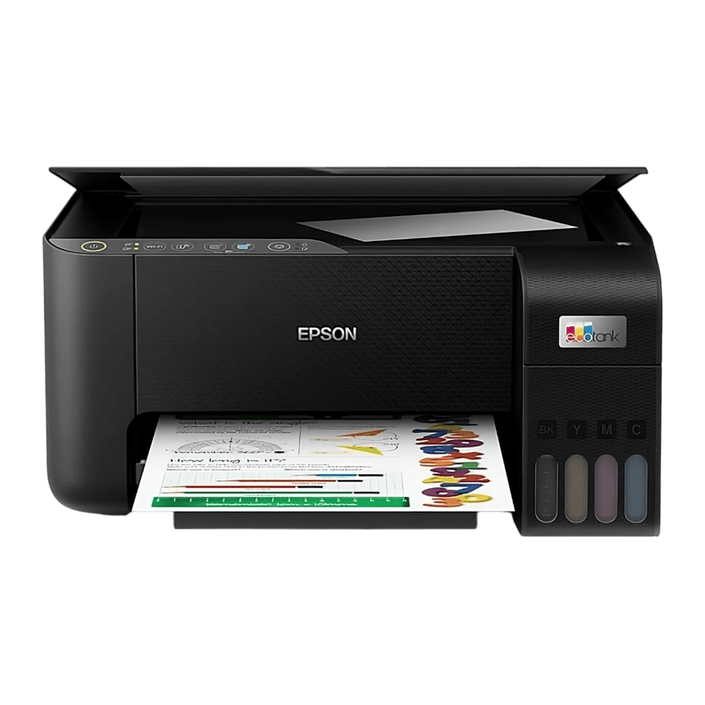 Impresora multifuncional de tinta continua con conectividad WiFi, ideal para el hogar y la oficina. Ofrece impresión, copiado y escaneo con alta eficiencia y bajo costo por página.
