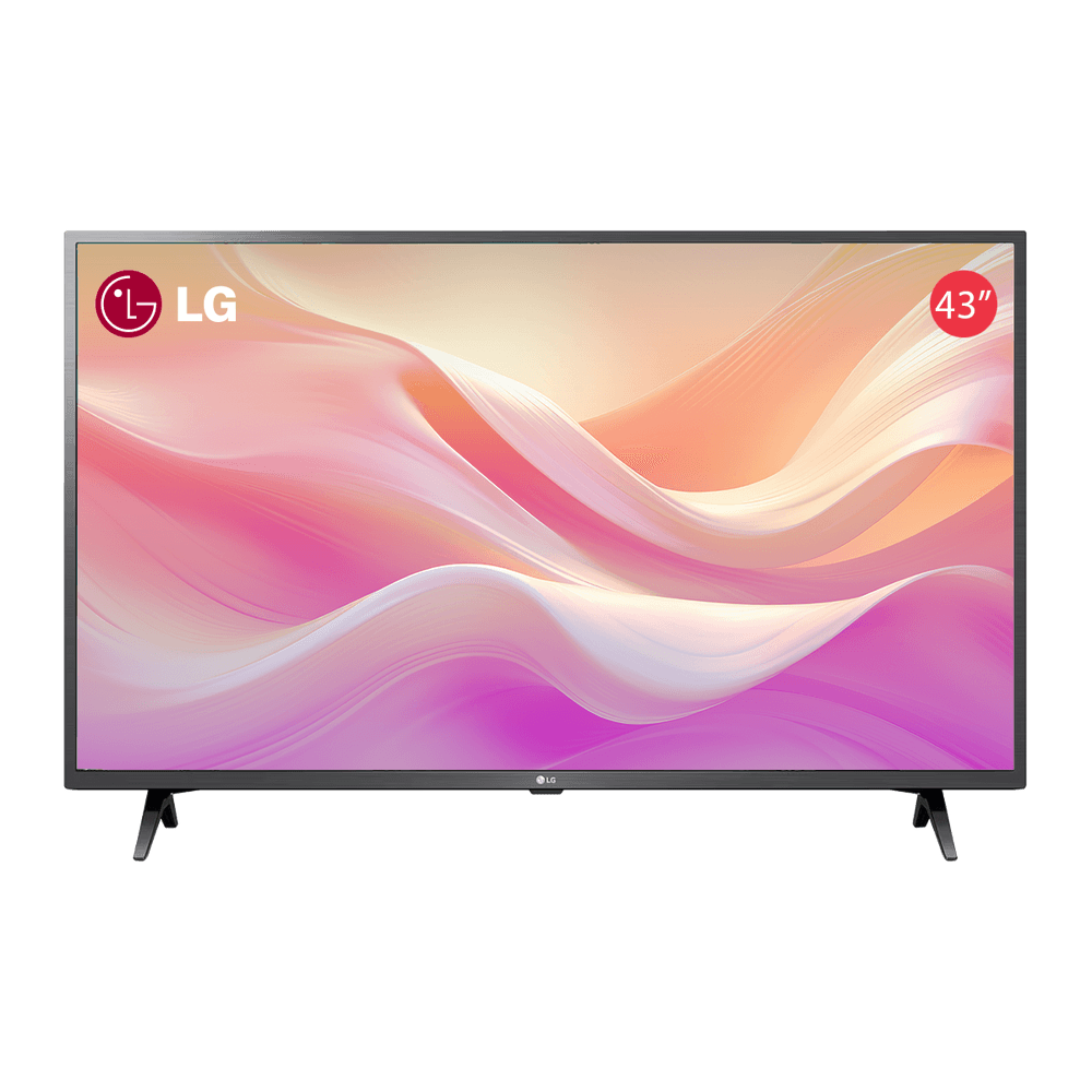 El televisor LG 43LR6700PSA presenta un diseño compacto y elegante en color negro, con un enfoque minimalista que se integra fácilmente en diversos espacios.