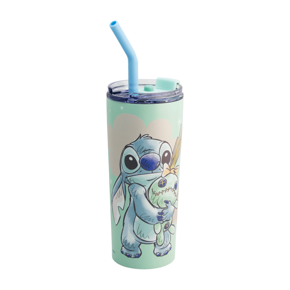 Termo compacto de 600 ml fabricado en acero con doble pared. Ideal para transportar bebidas y mantener su temperatura, con diseño de Stitch en tono verde pastel.